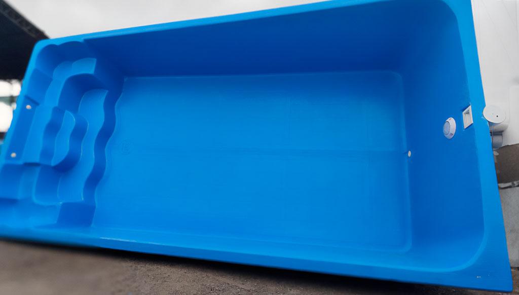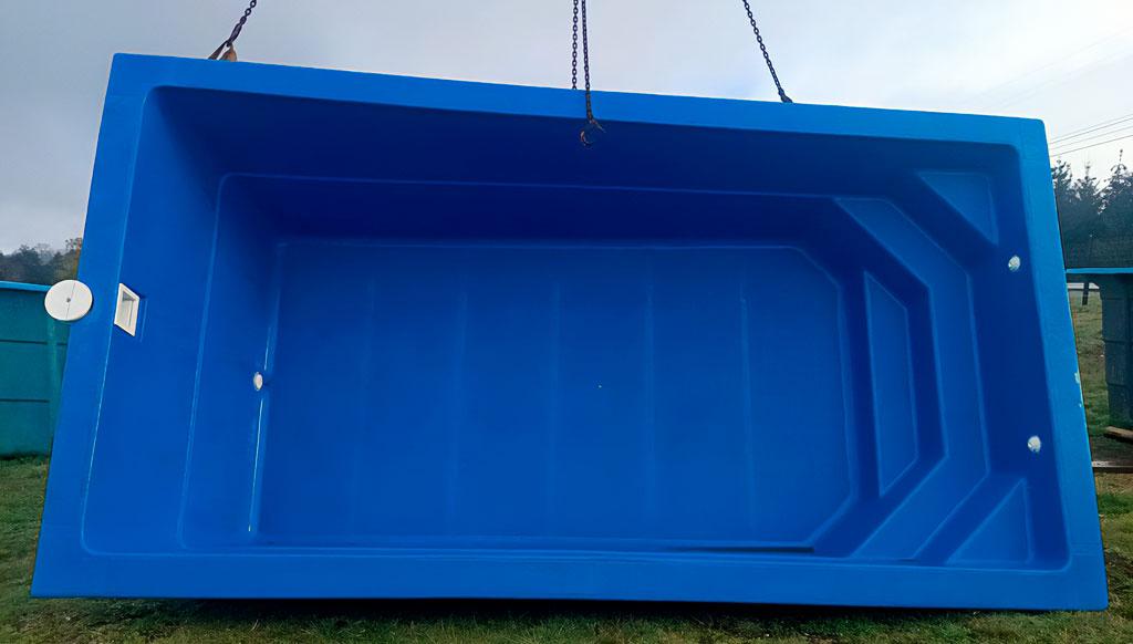Piscina de fibra de vidrio familiar Rectangular, ideal para parcelas o sitios de grandes, con profundidad para niños mayores de 10 años y adultos.